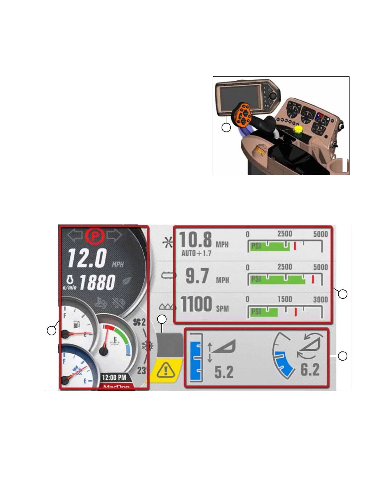 A - Left Gauge Cluster B - Header Information C - Current Header Position D - Telltales