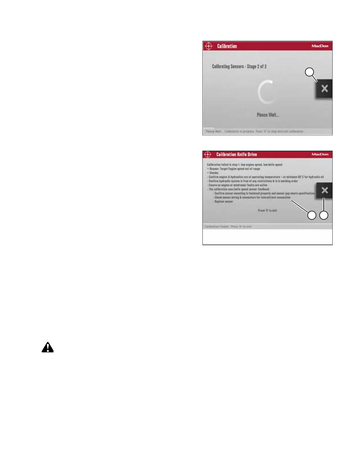 During the calibration procedure, the windrower’s