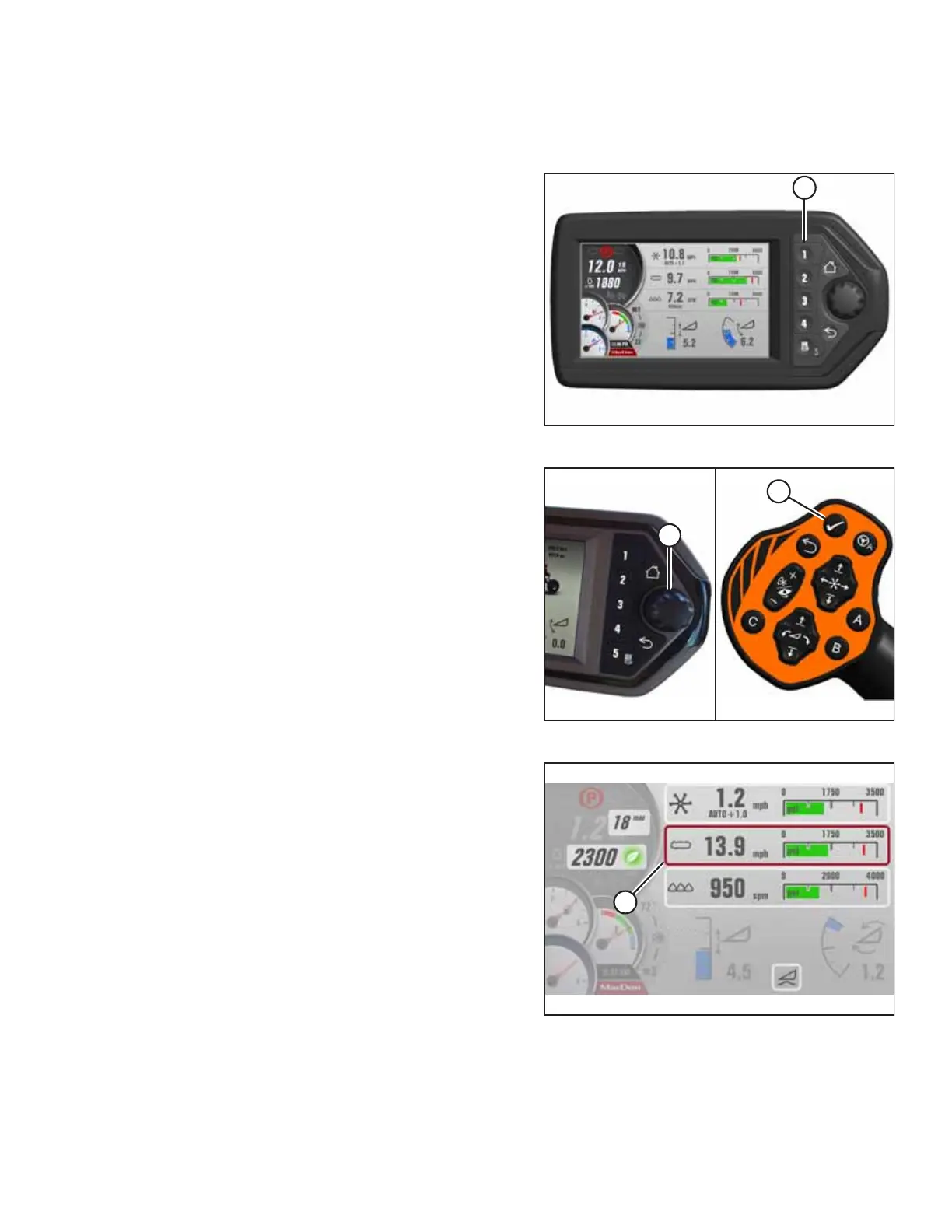 2. Press scroll knob (A) on the Harvest Performance Tracker