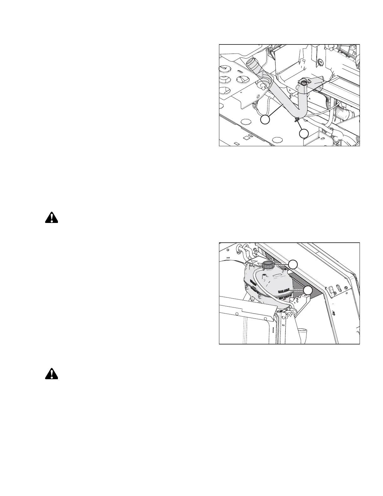 5. Add coolant until the recovery tank is one-half full. Check the coolant level again. For instructions, refer to 5.7.5