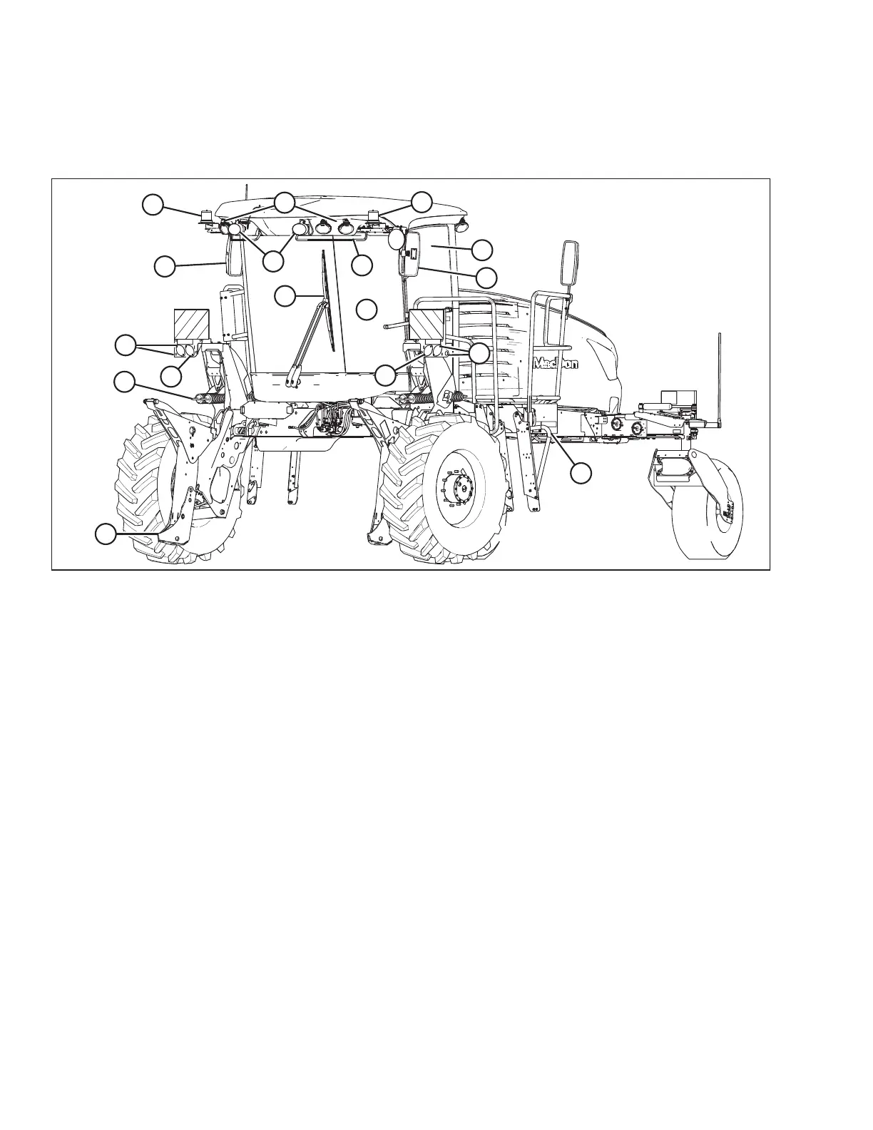 Maintaining and servicing the windrower is easier if you are familiar with the location of the windrower’s main