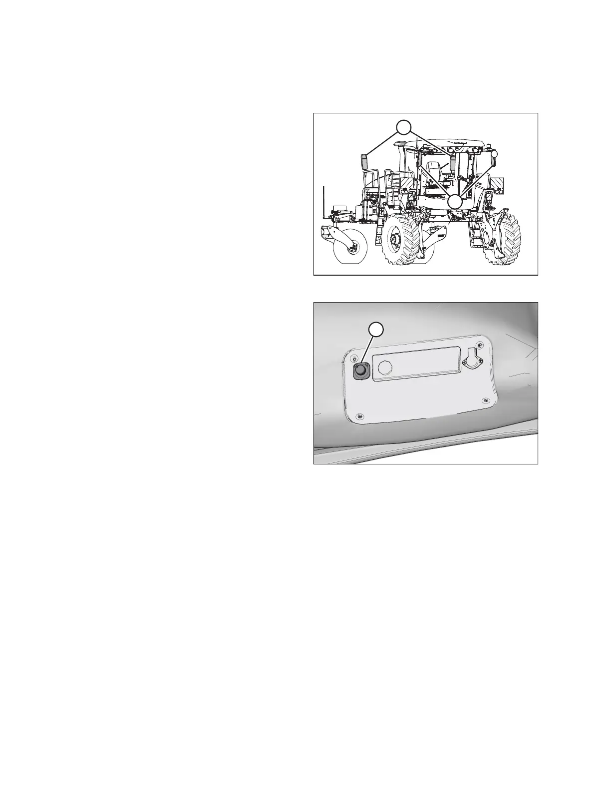 Mirrors provide a view behind the windrower whether the windrower is in cab- or engine-forward driving mode.