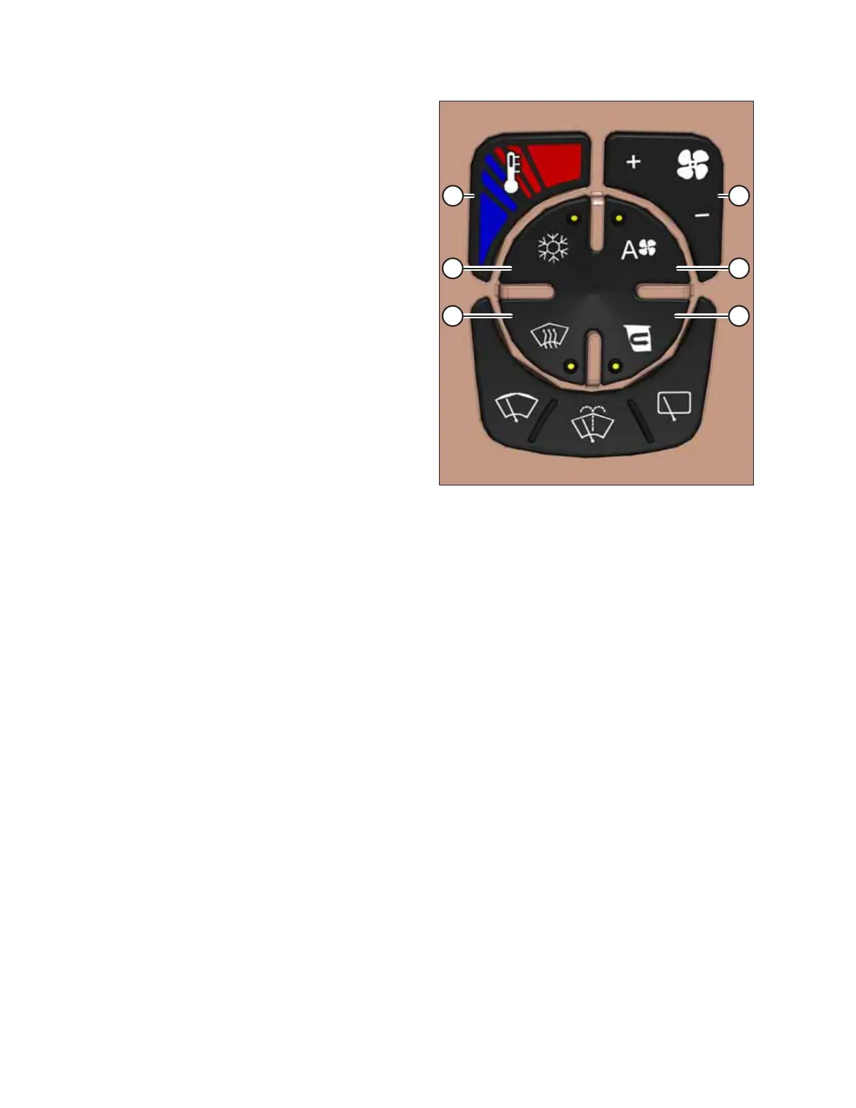 • Press blue (bottom) area to decrease cab temperature.
