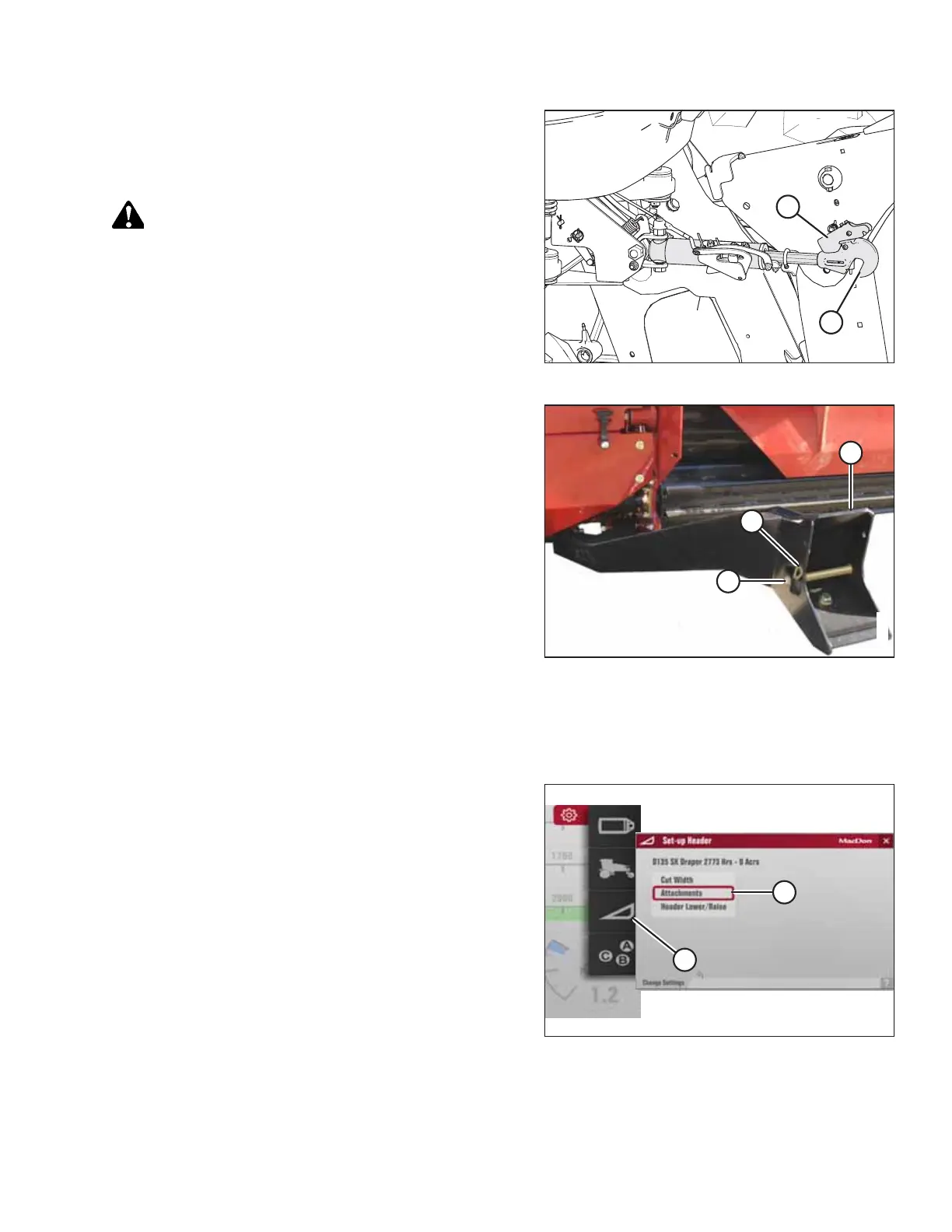 13. For windrowers without self-aligning center-link: Shut off