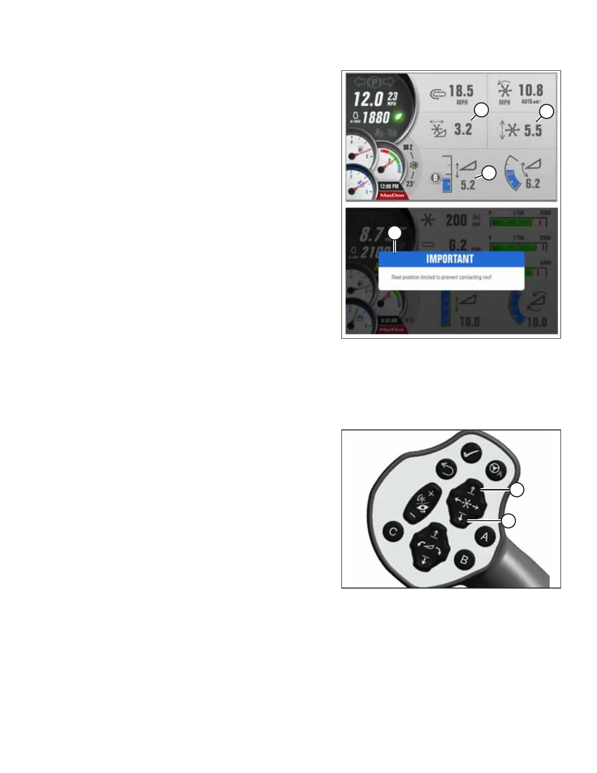Optimize header performance based on crop type and conditions by adjusting the reel height position. The reel height