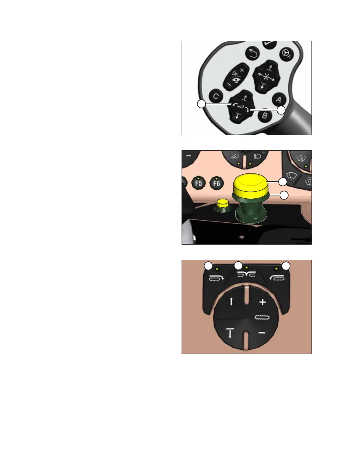 1. Start the engine, and use HEADER TILT switches (A) and (B)