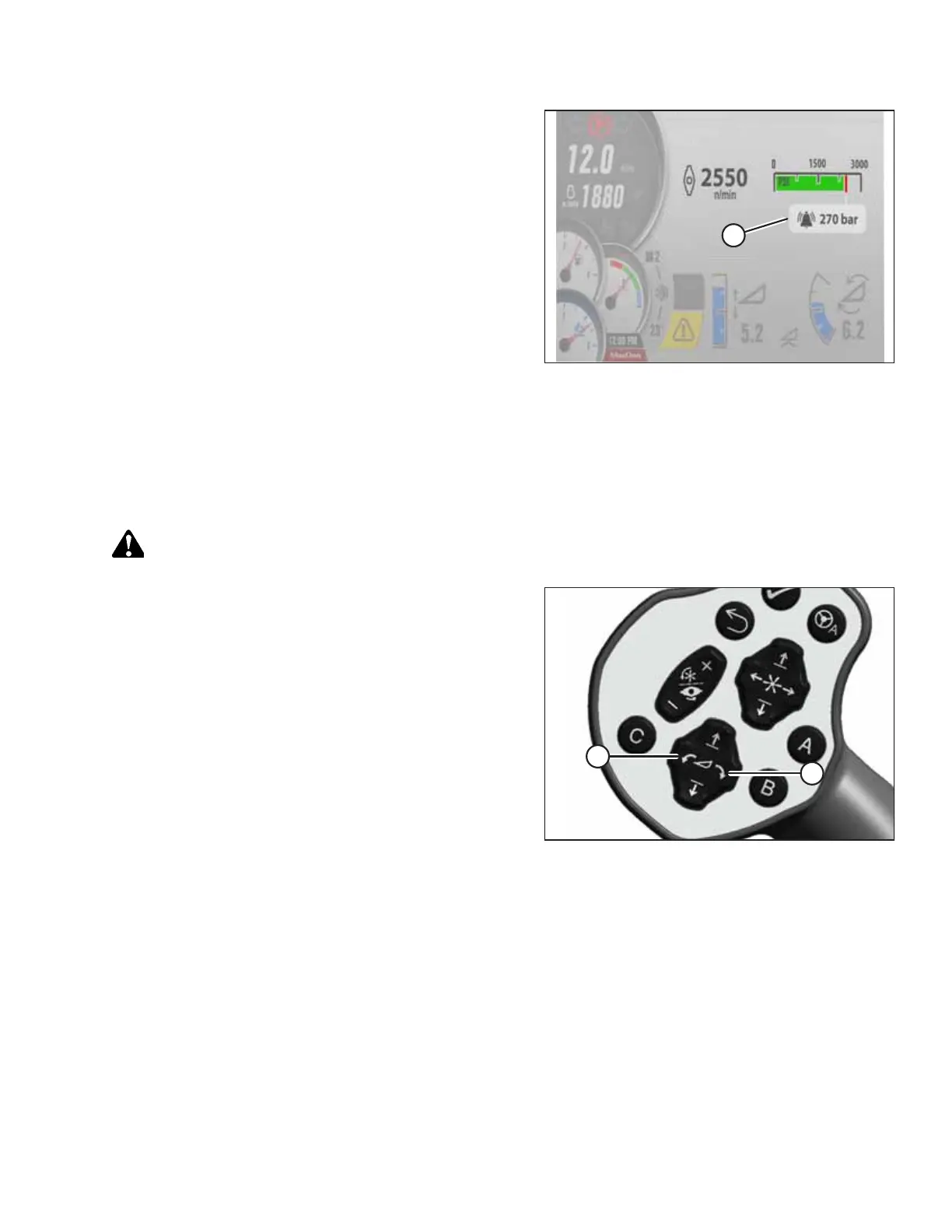 1. Start the engine and use HEADER TILT switches (A) and (B)