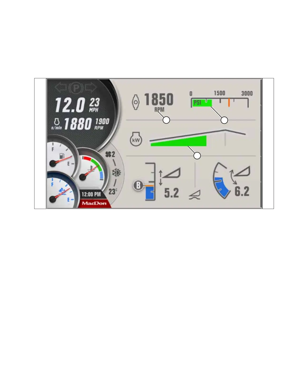 A - Disc Speed B - Disc Pressure C - Engine Load Bar