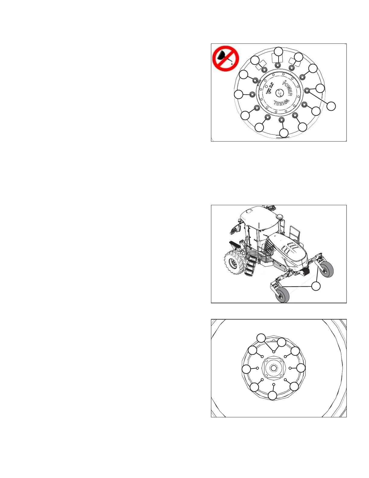 At first use or when a wheel is removed, check wheel nut/bolt torque every 15 minutes on the road or 1 hour in the field