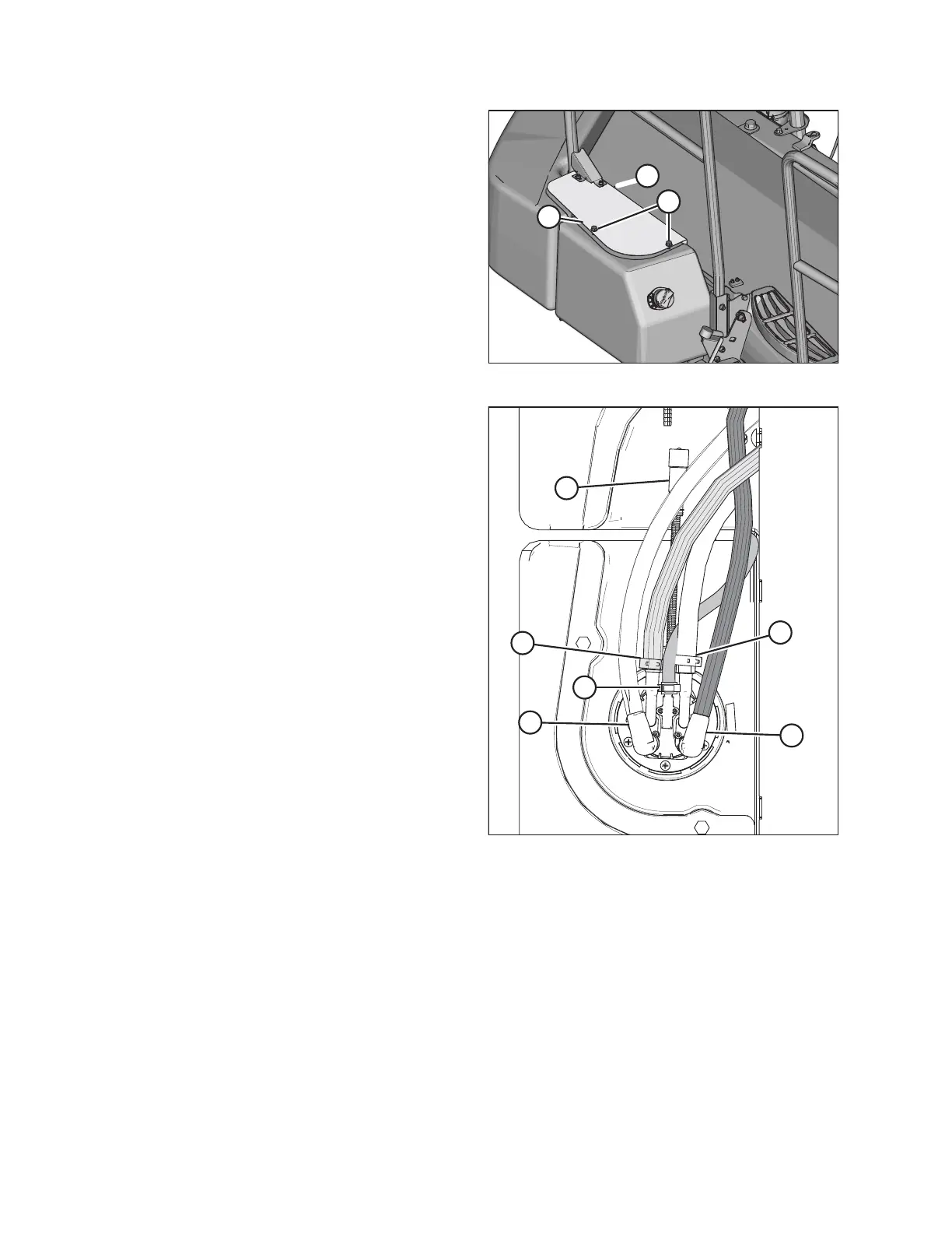 6. Label DEF suction hose (E) and DEF backflow hose (D), and