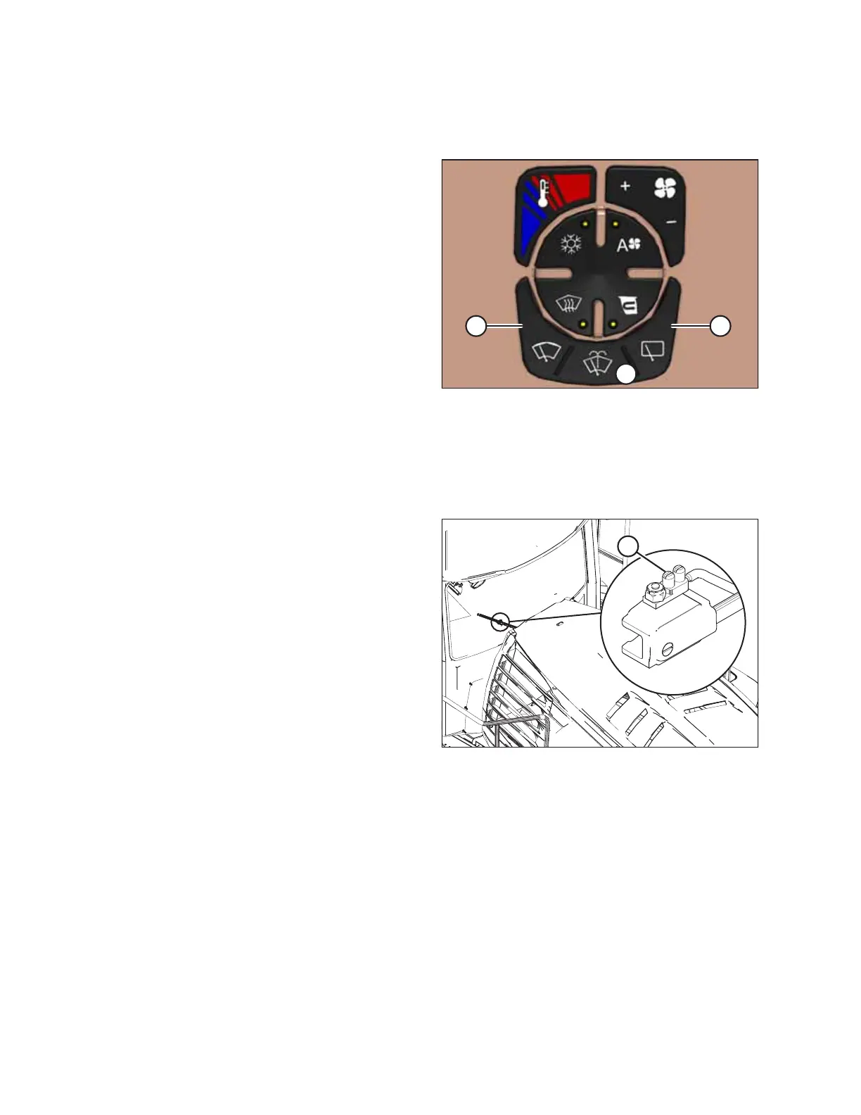 washer fluid onto both windows. When the button is released, the washer fluid stops, and the active wiper will