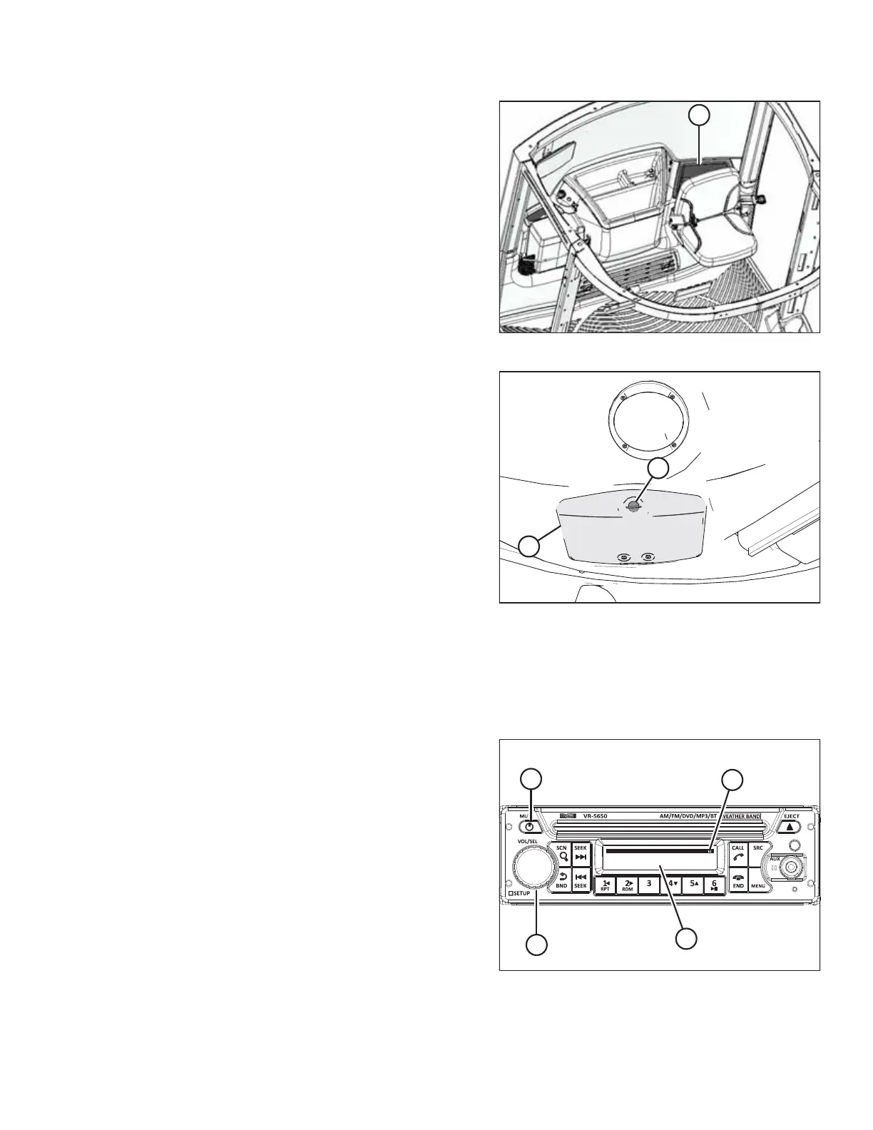 2. Press and hold VOL/SEL knob (B) for 2 seconds. MENU is