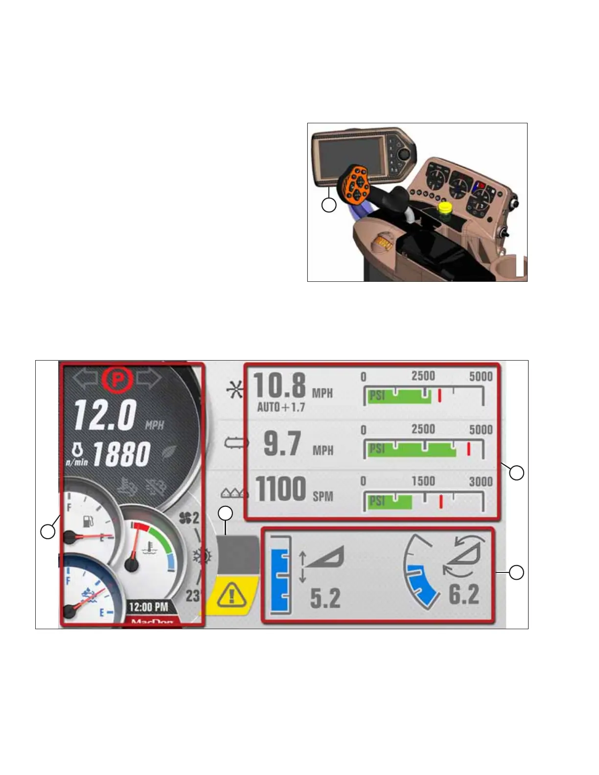 A - Left Gauge Cluster B - Header Information C - Current Header Position D - Telltales