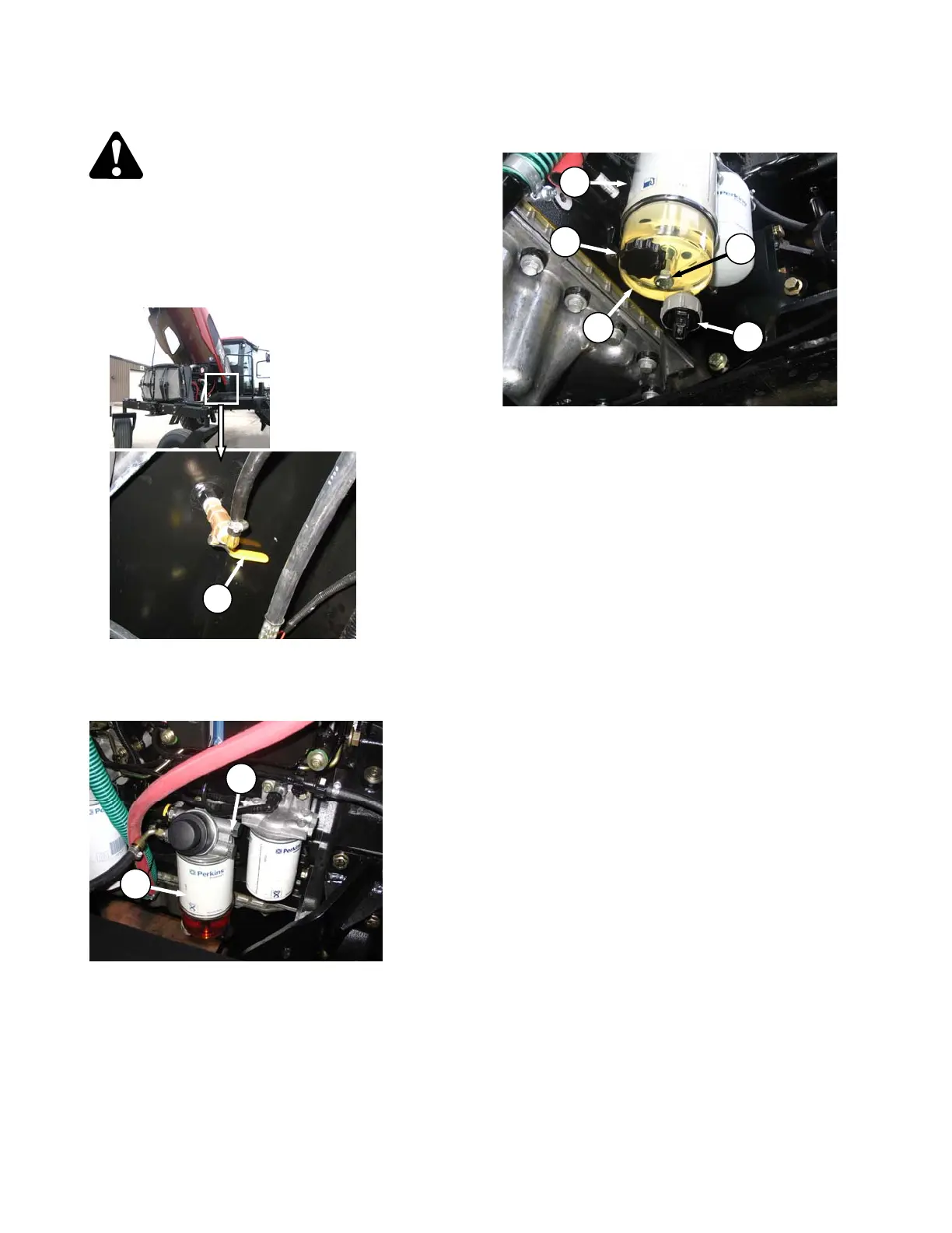 b. Close fuel supply valve (E) under fuel tank.