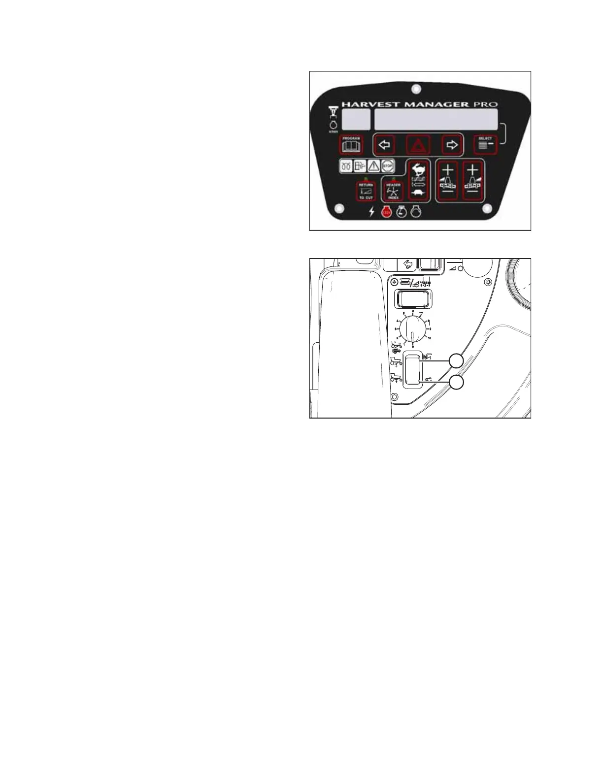 7. Press and hold button (A) to lower the swath compressor.