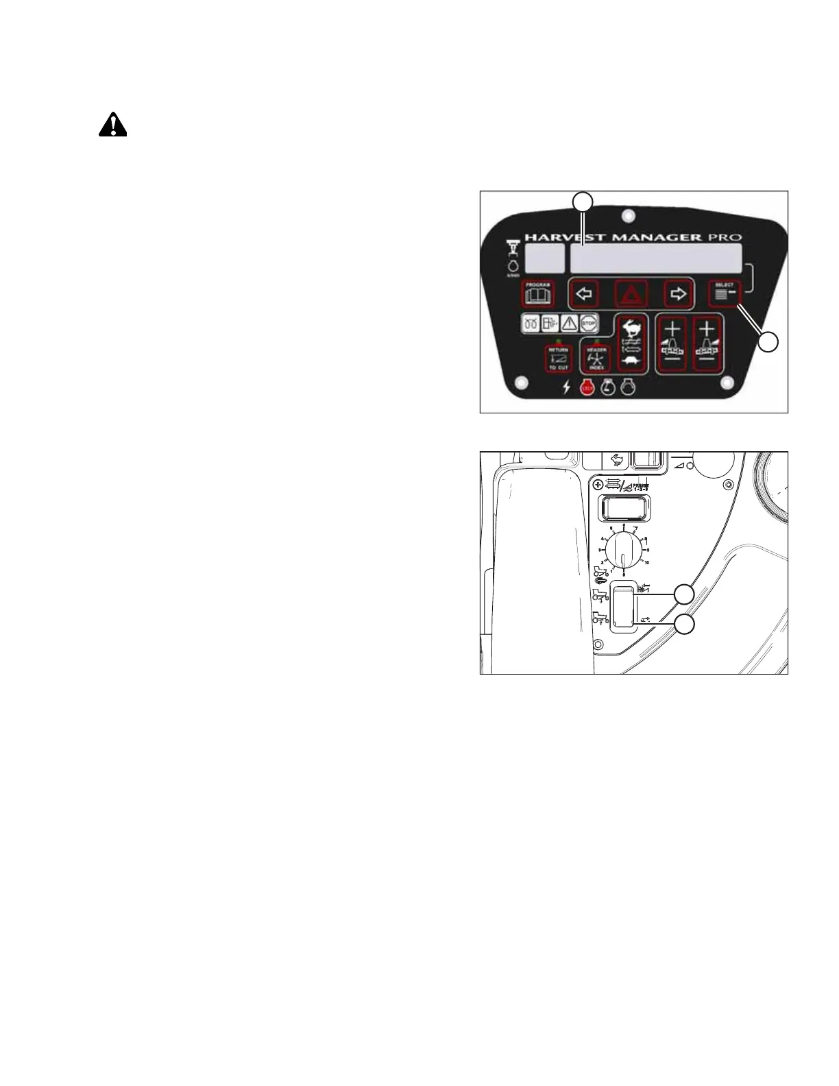 • When the windrower’s ground speed is greater than 1.6 km/h (1 mph) and the HEADER ENGAGE switch is OFF, the