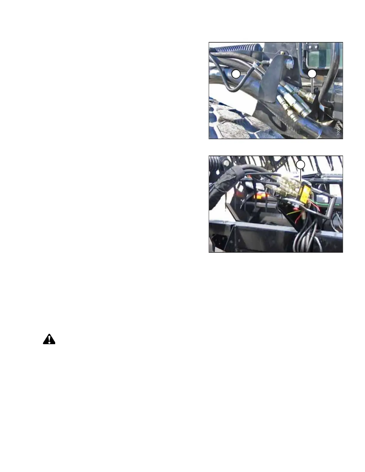 21. Connect header drive hoses (A) and electrical harness (B) to