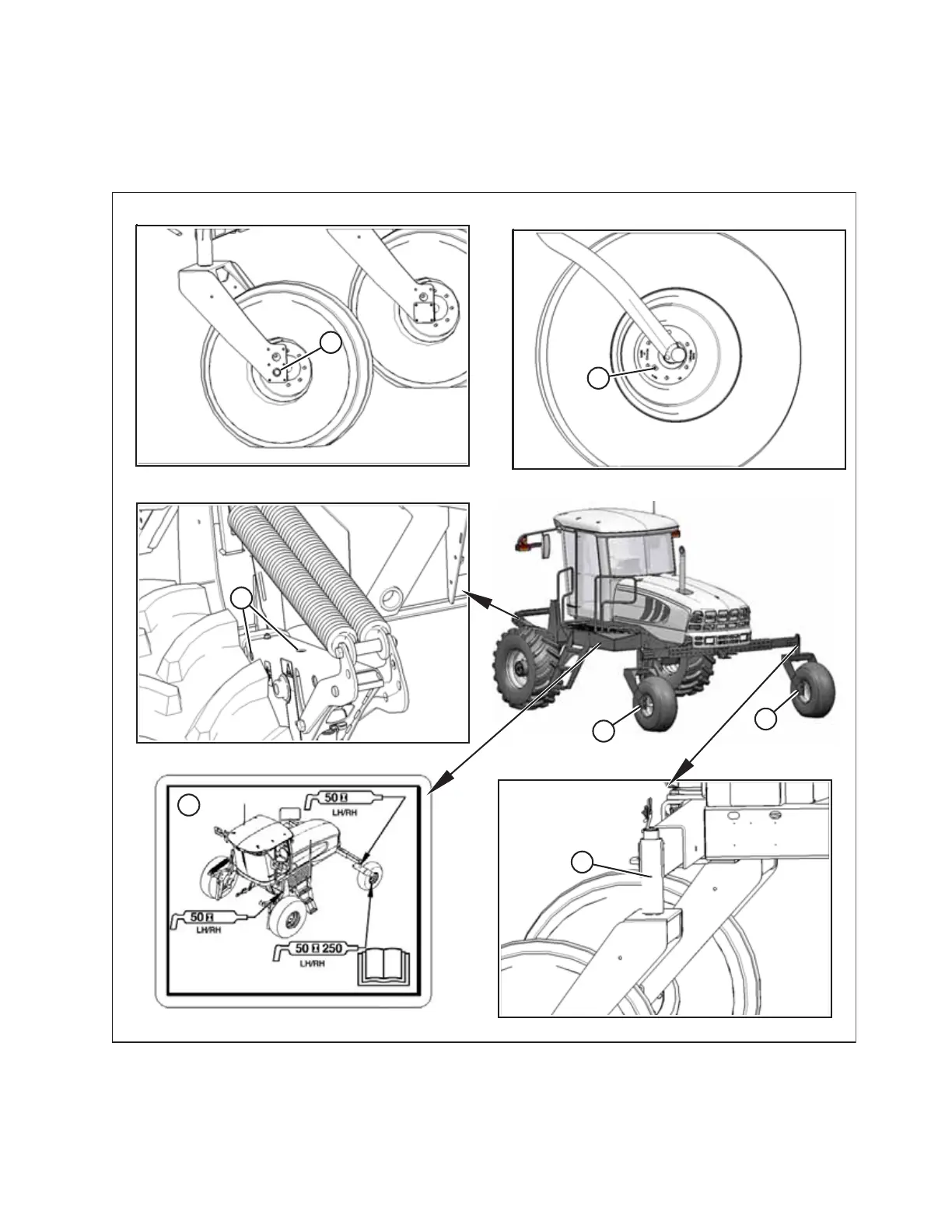 These are the points on the windrower which will need to receive regular lubrication. Refer to the Maintenance Schedule