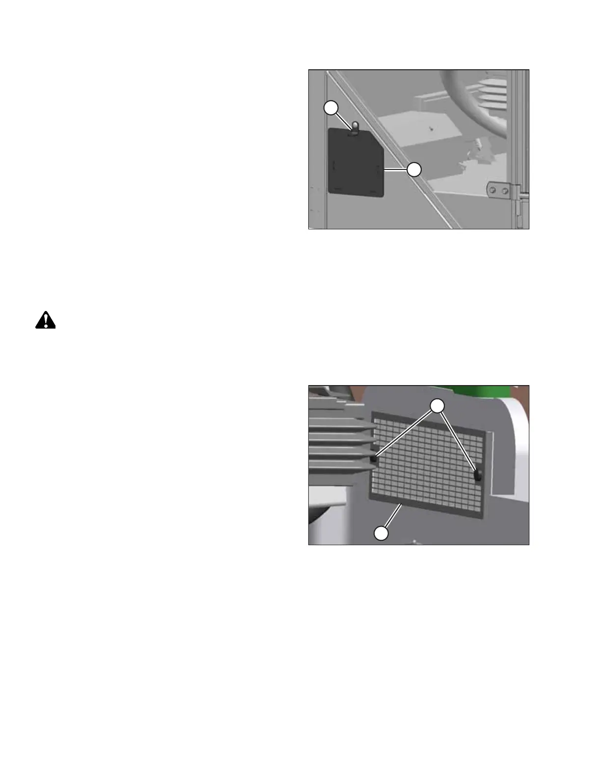 Before the return air filter can be cleaned and inspected, it must be removed from the windrower’s cab.