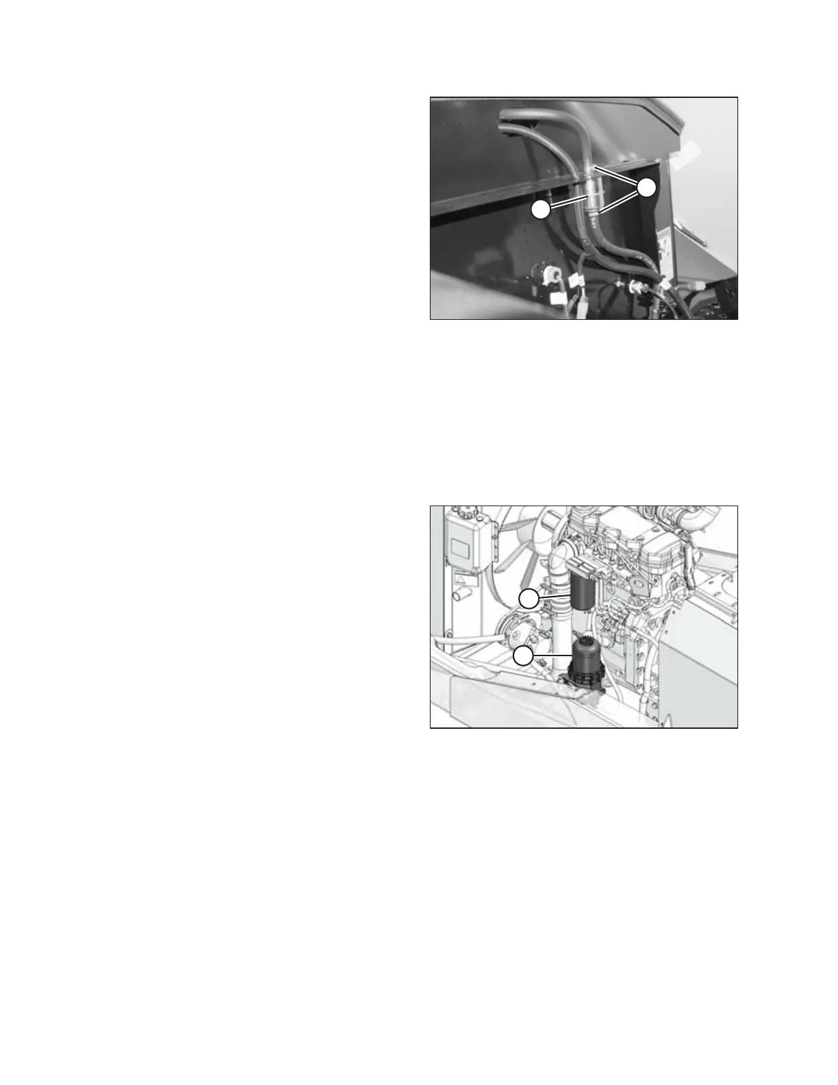 The windrower’s fuel system is equipped with two threaded cartridge filters: a primary and a secondary. The primary filter