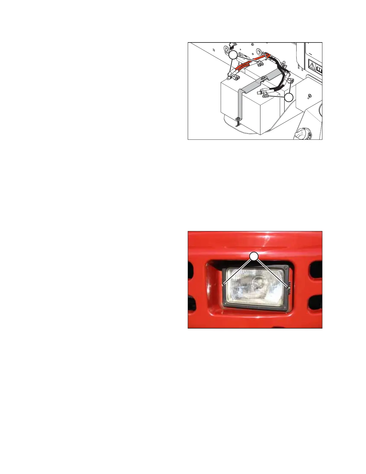 These lights sit at the end of the engine compartment. They are used as headlights when the windrower is operating in