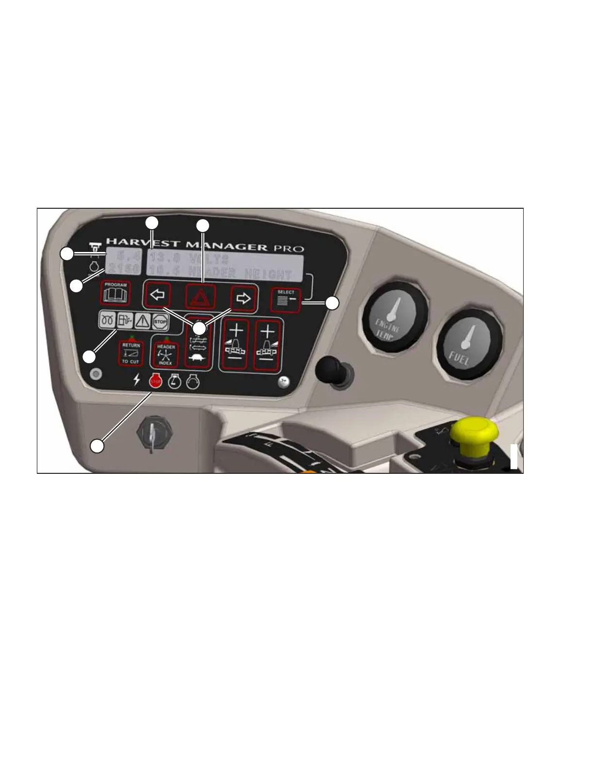 • DISPLAY (C) – Reports windrower performance data