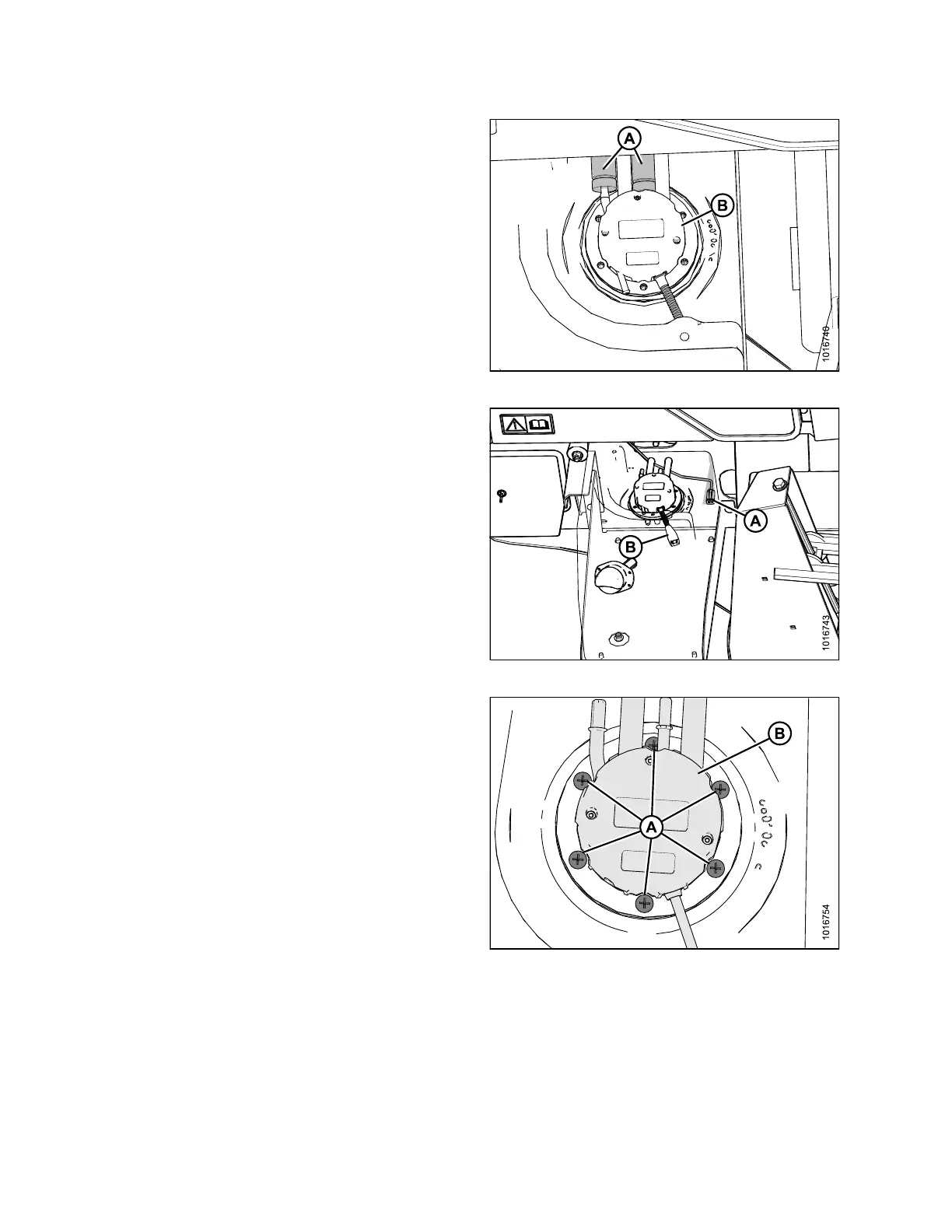 screws (A) holding the DEF head (B) to the tank.
