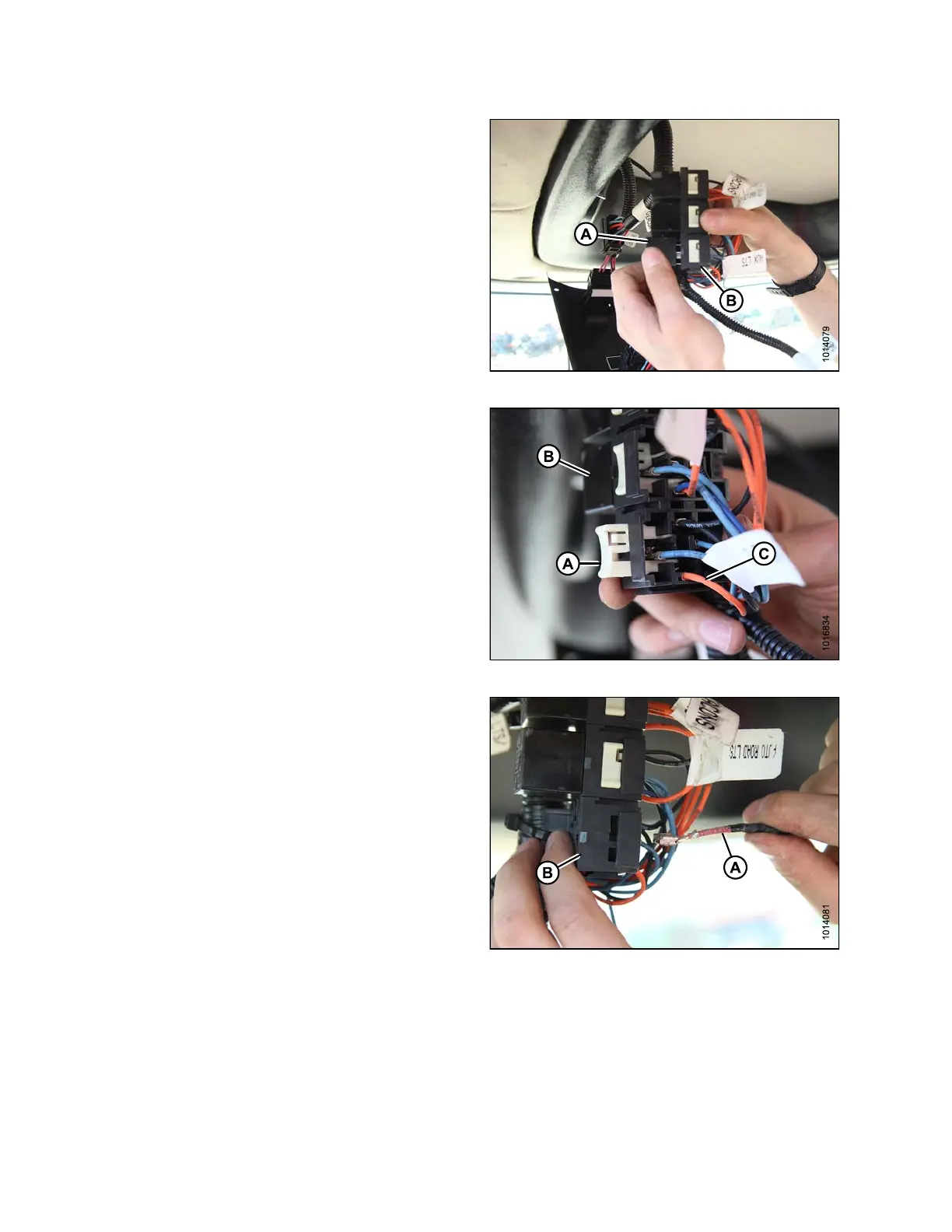 7. Remove the existing AUXILIARY LTS (orange) wire (C)