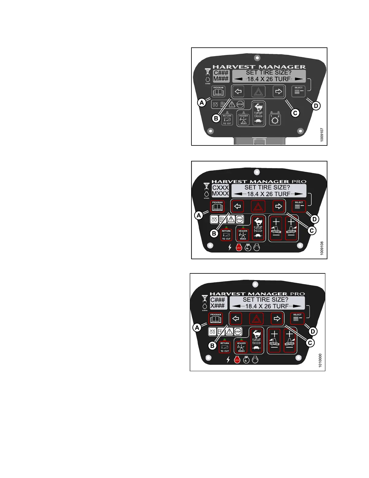 4. Press S E LECT (D) until SET TIRE SIZE? is displayed