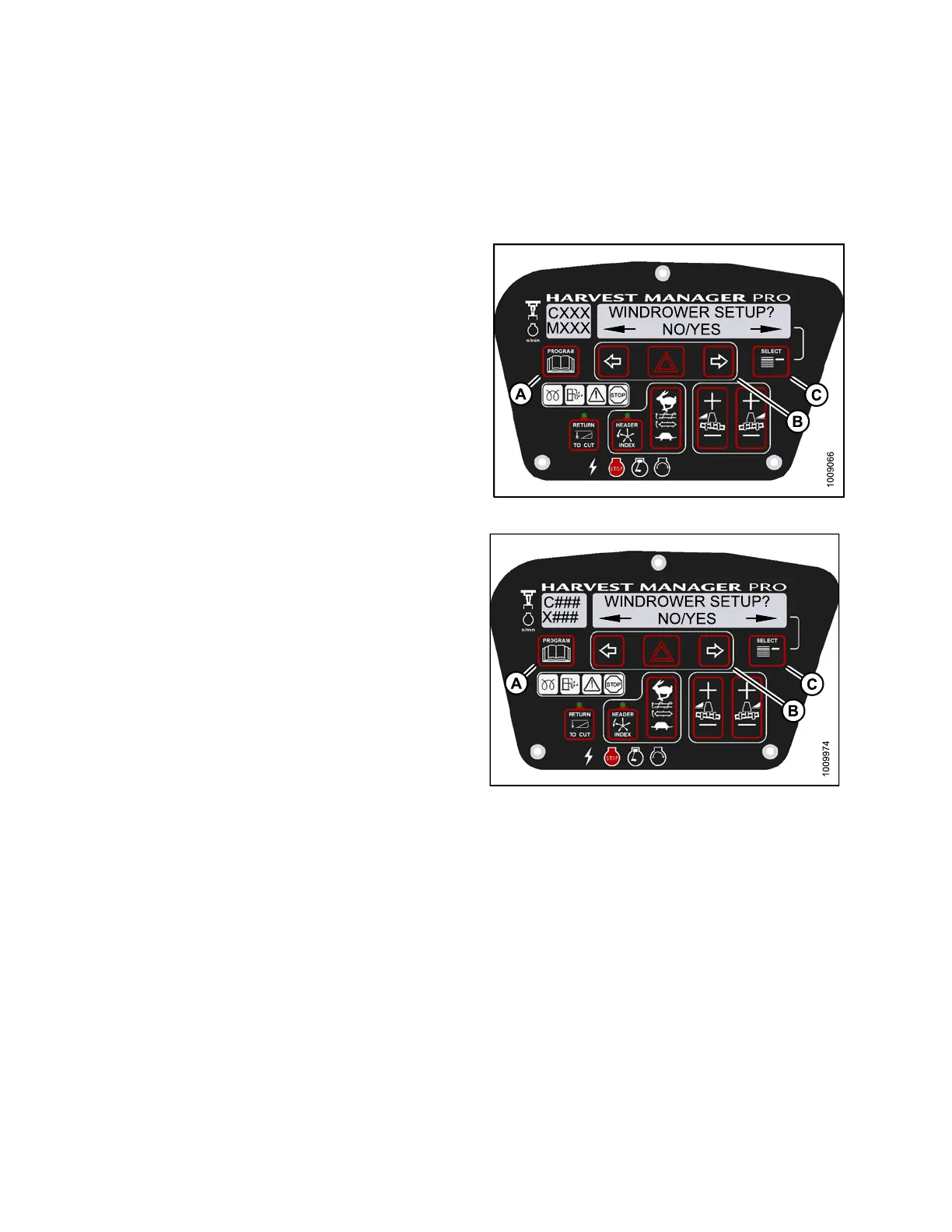 2. Press PROGRAM (A) and SELECT (C) on cab display