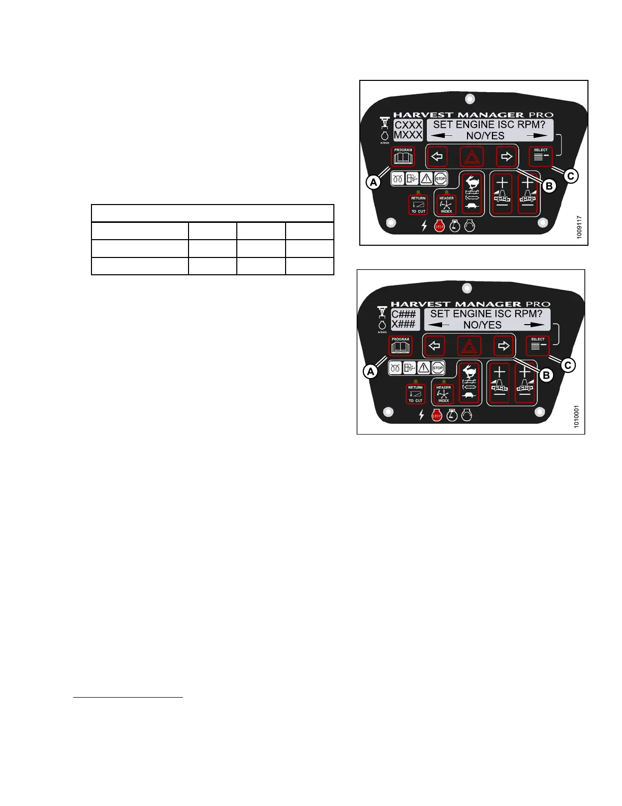 4. Press SELECT (C) until SET EN GINE ISC RP M? is
