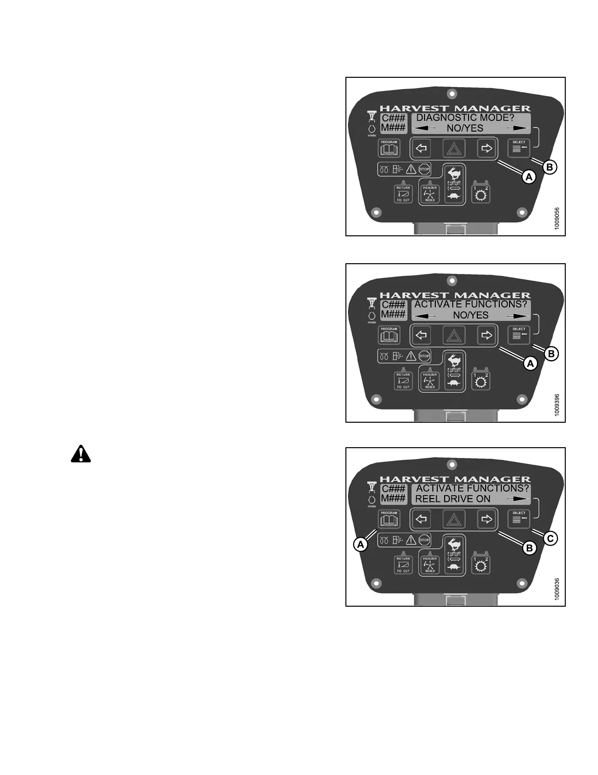 9. Release right (B) arrow to deactivate reel drive.