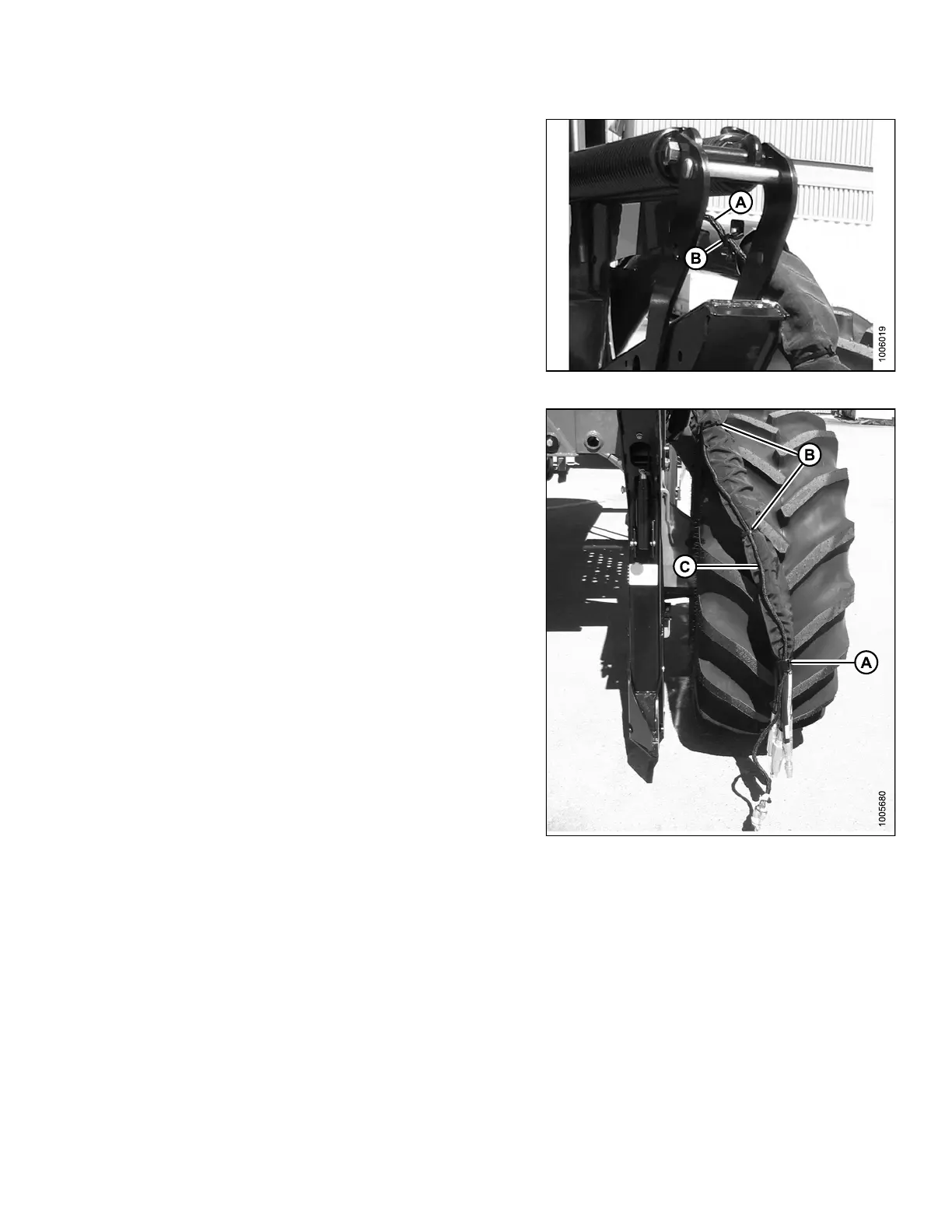 33. Secure harness (C) to hose bundle with strap (A) and