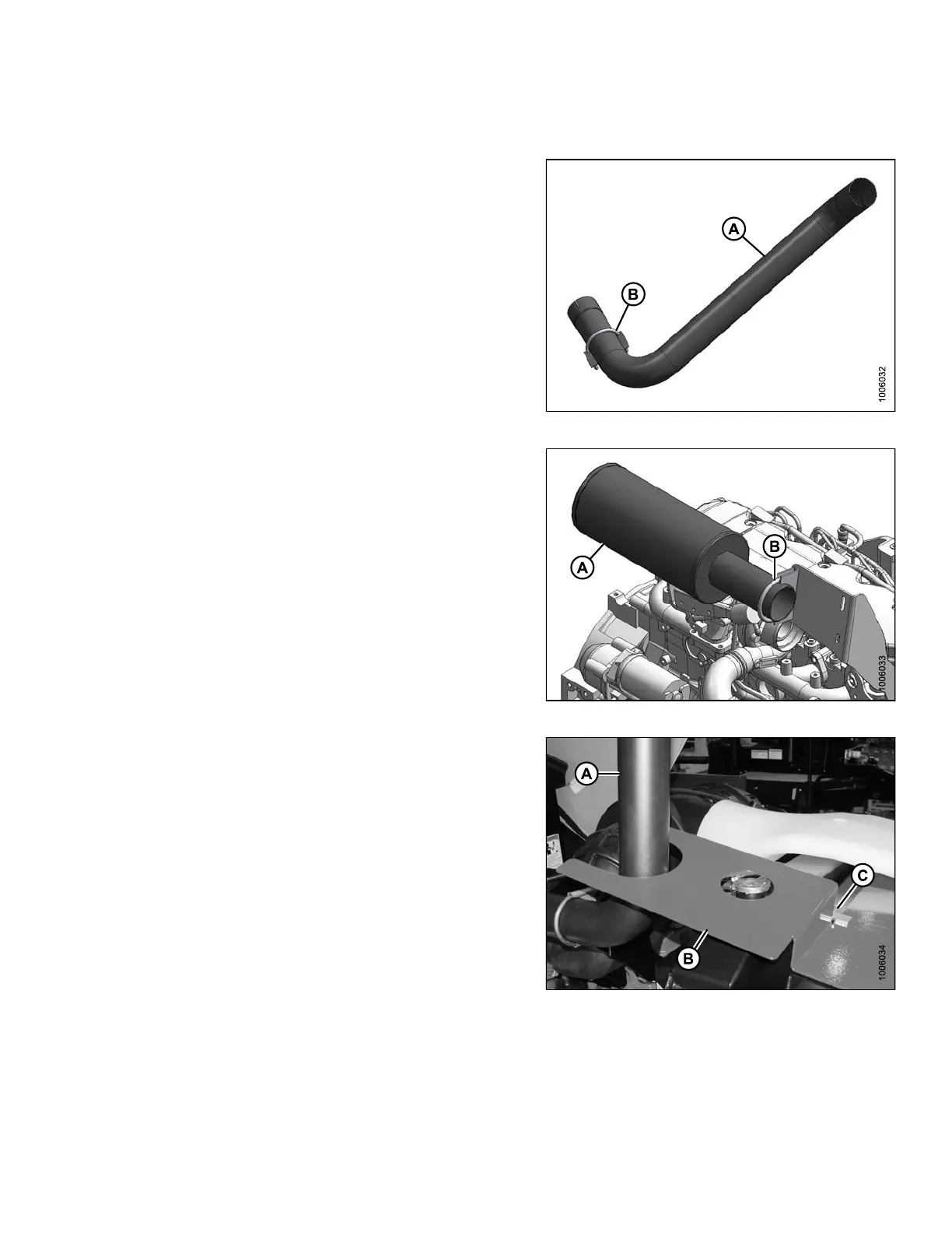 3. Loosen the clamp (B) on the exhaust stack (A).