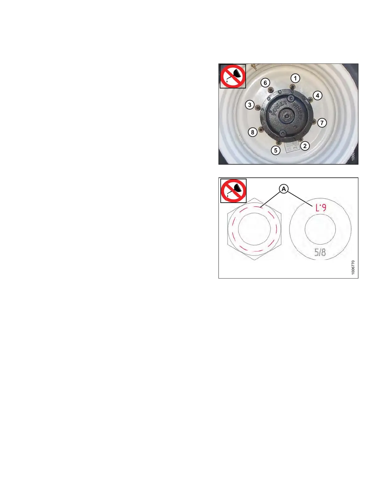 1. Tighten nuts to 170 ft·lbf (230 Nm) using the tightening