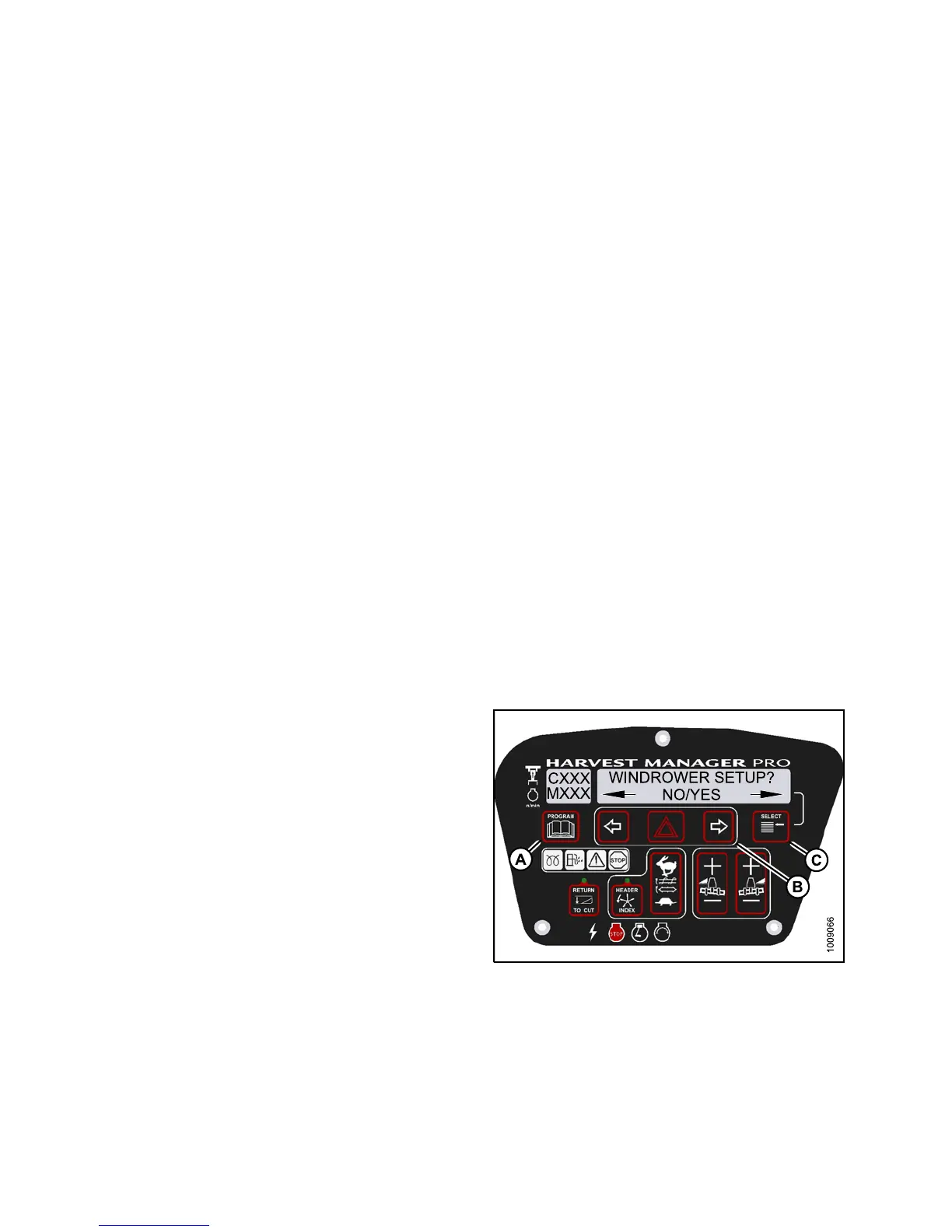 • WINDROWER SETUP? is displayed on the