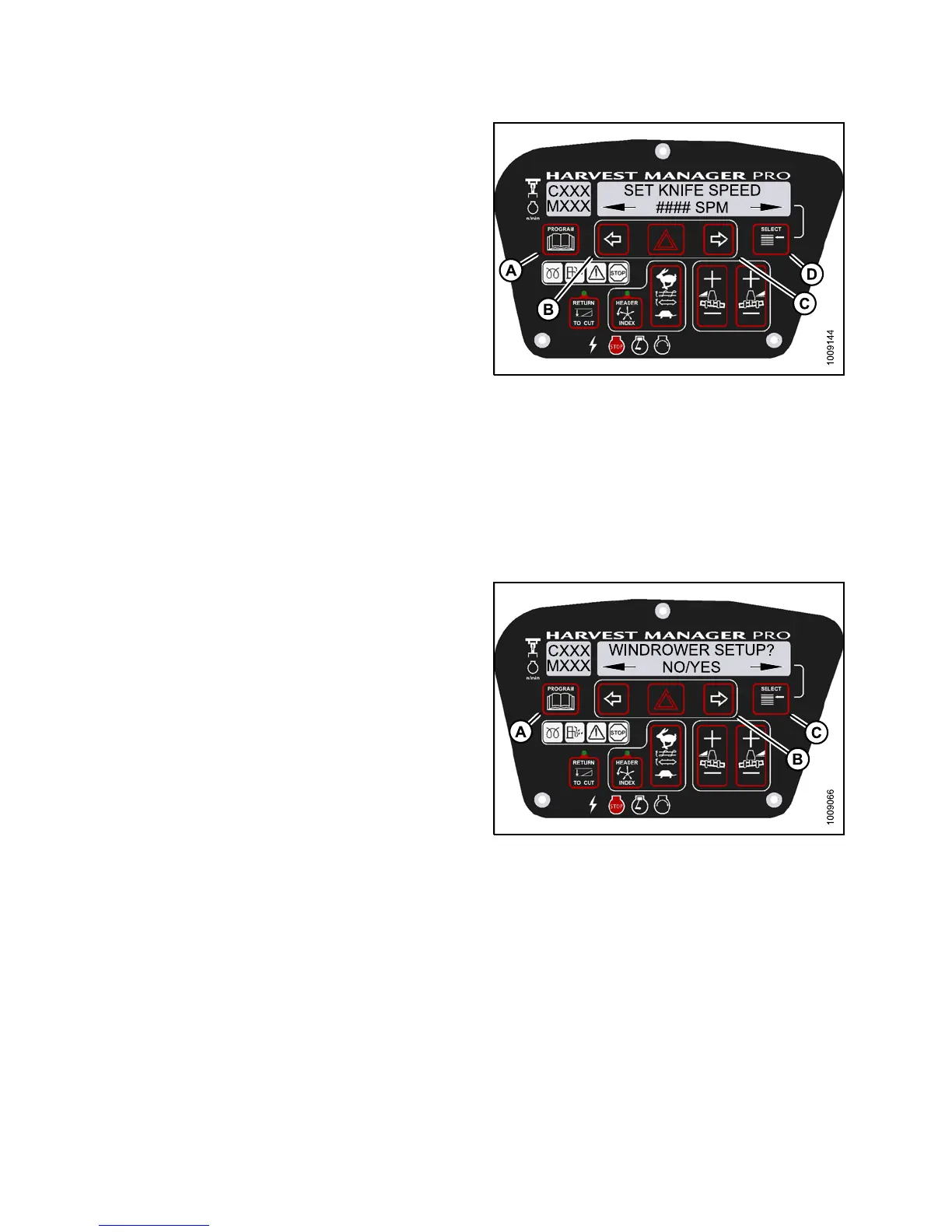 • WINDROWER SETUP? is displayed on the