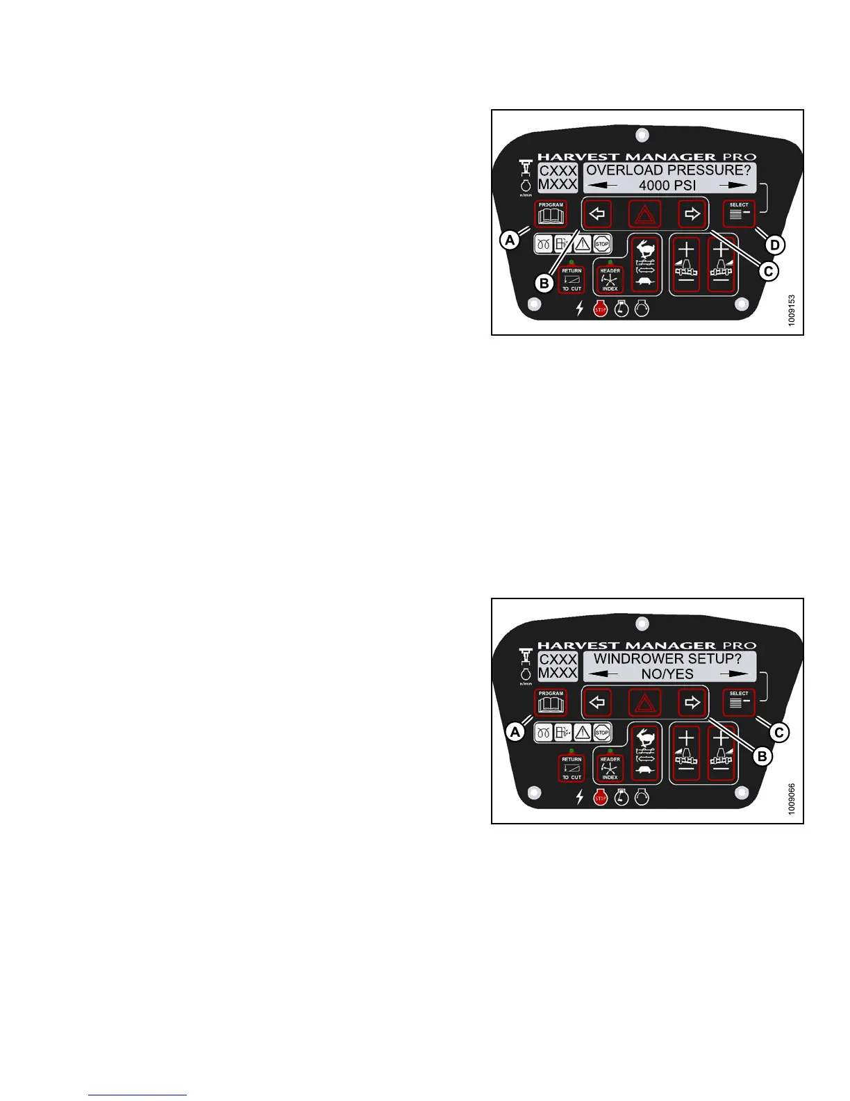 4. Press SELE CT (D) until OVERLOAD PRESSURE? is