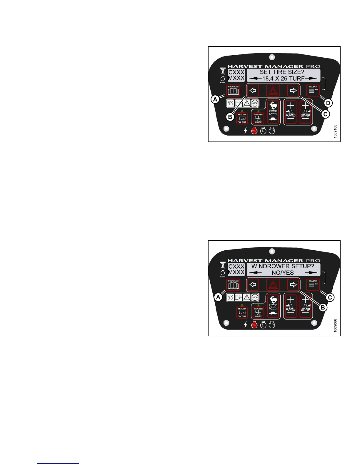 4. Press SELECT (D) until SET TIRE SIZE? is displayed