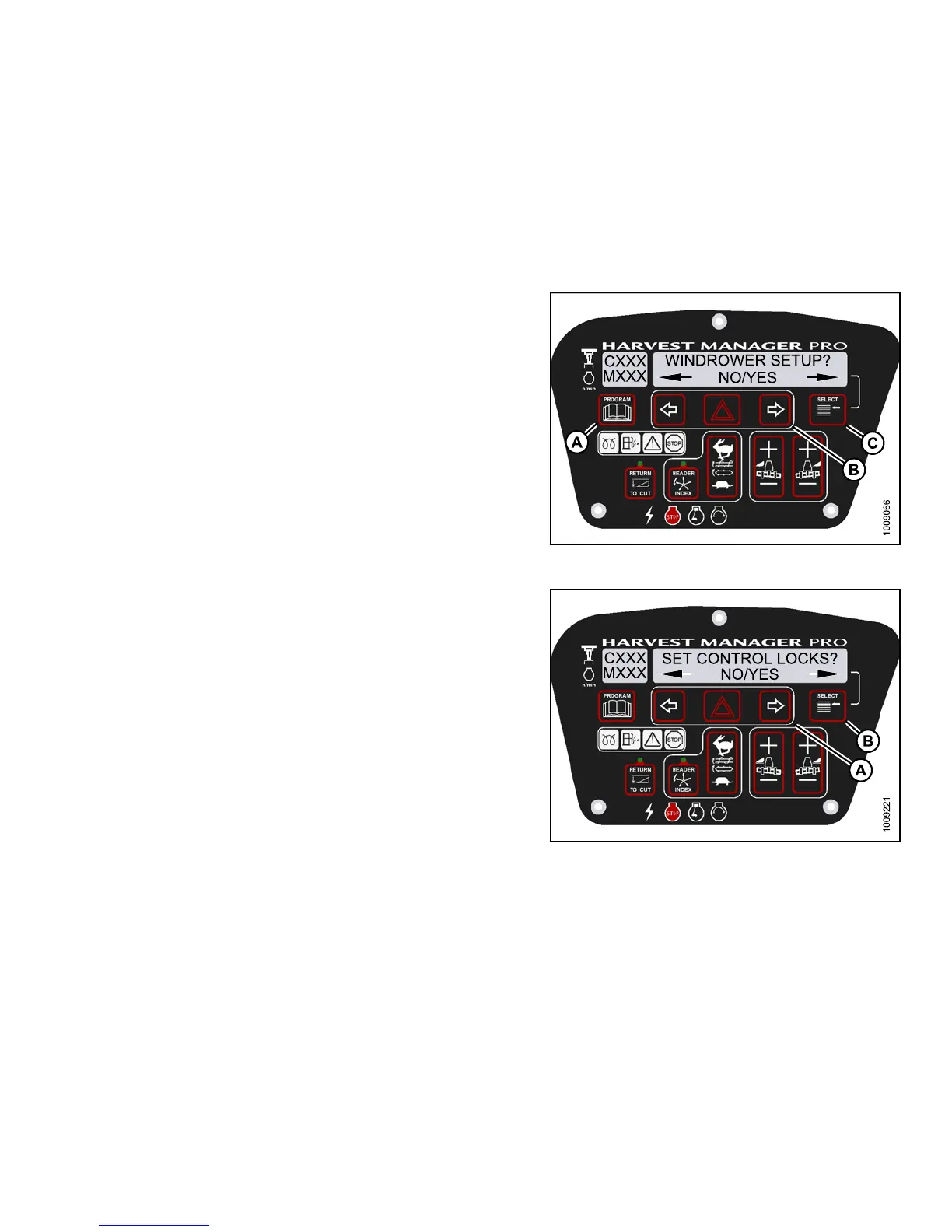 • The header MUST be attached to the windrower to perform this procedure. The cab display module (CDM)