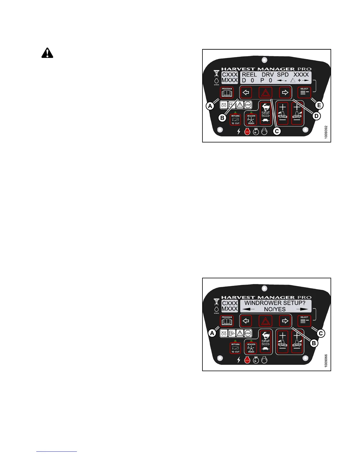 2. Press PROGRAM (A) and SELECT (C) on cab display
