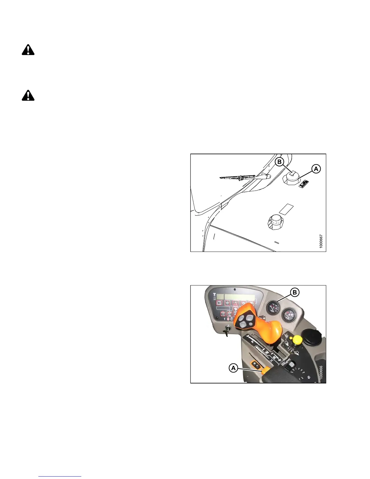 6. Replace fuel tank cap (A) and turn cap handle (B)