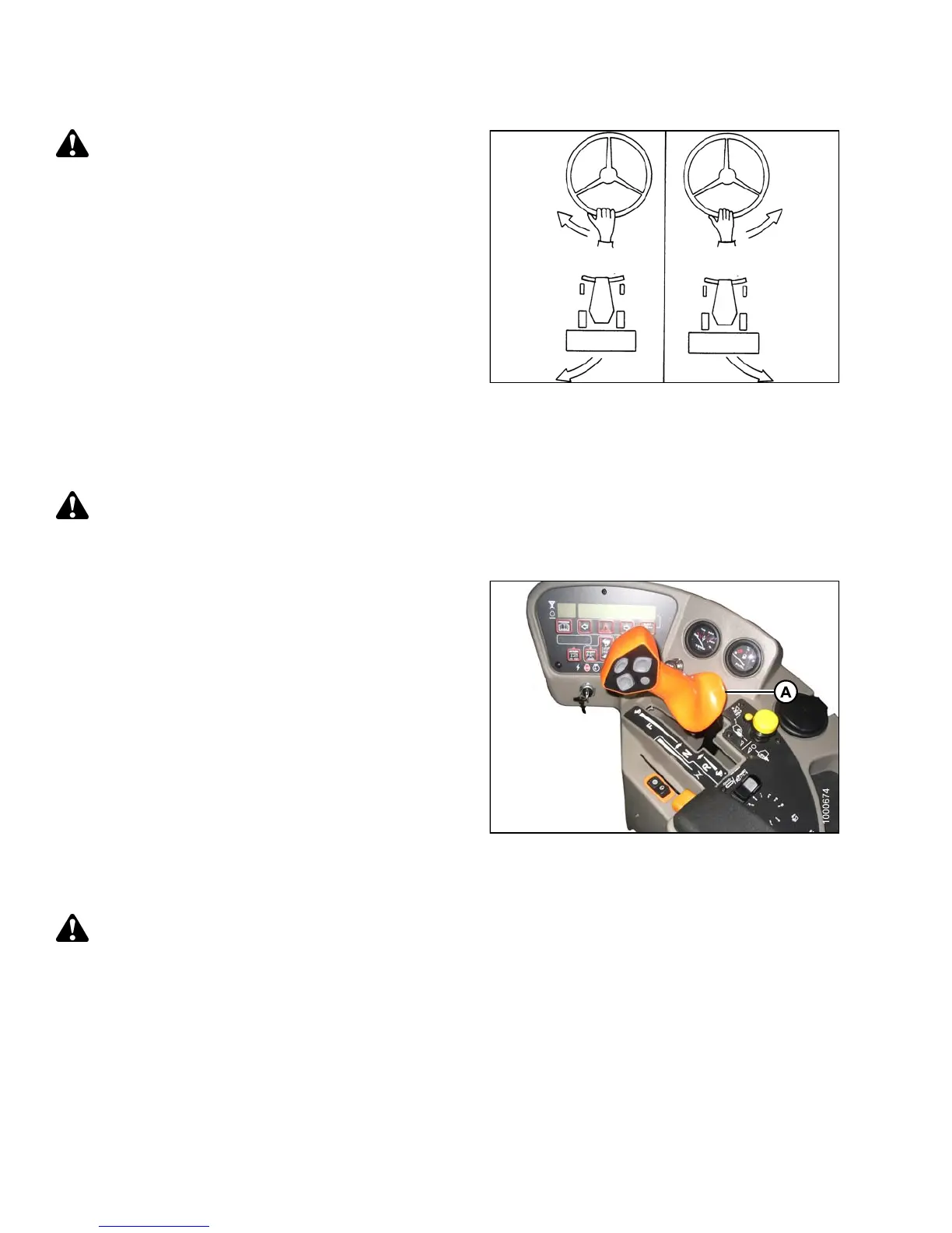 Be sure area is clear before making turns. Although windrower pivots on the spot, the ends of the header