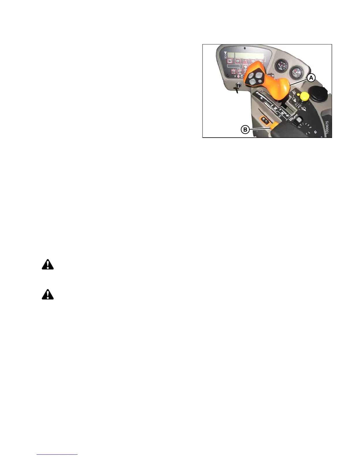 3. Move throttle lever (B) to low idle position .