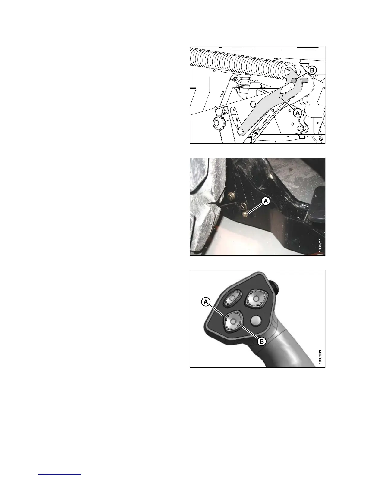 8. Remove pins (A) from lower end of lift linkages.