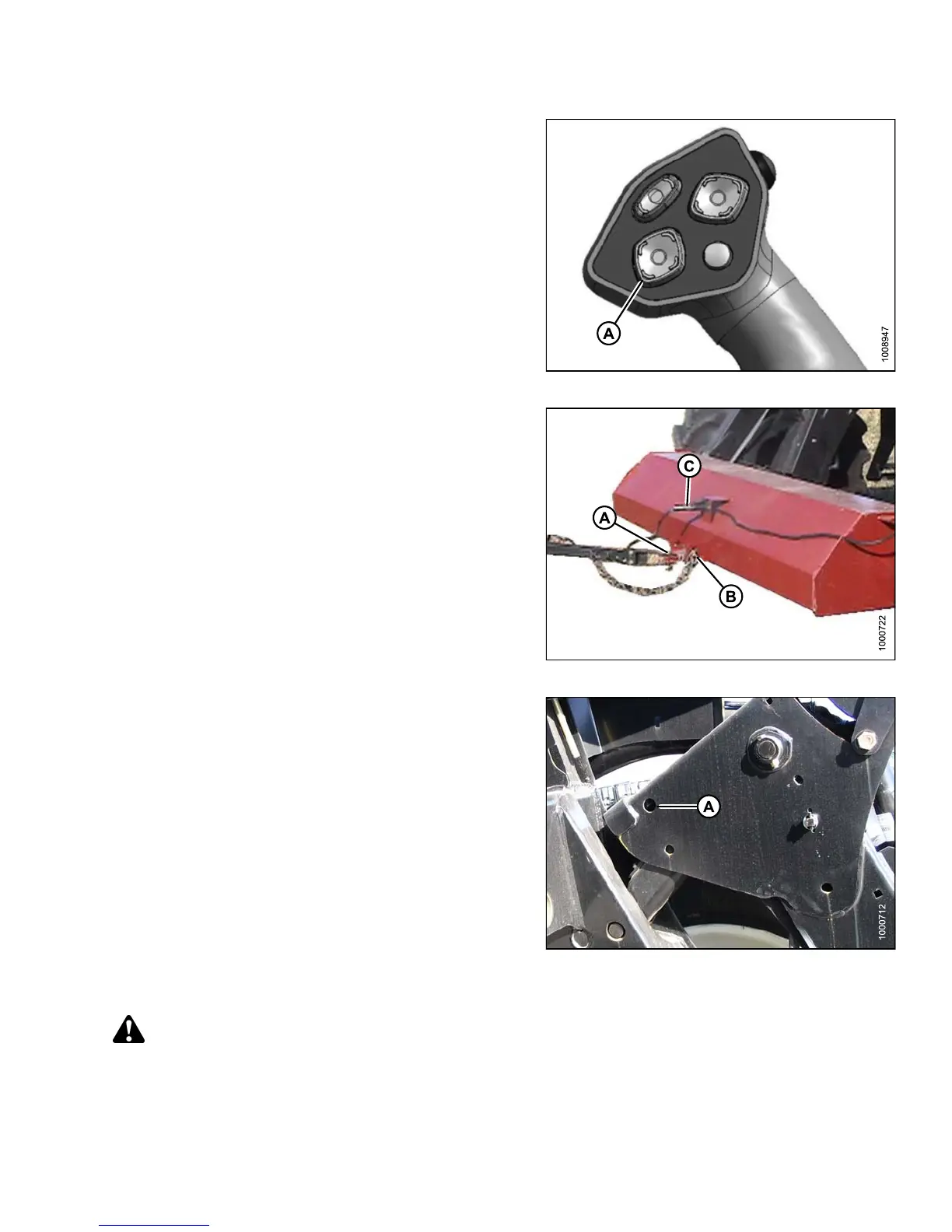 16. Connect hitch harness (C) to electrical socket at front