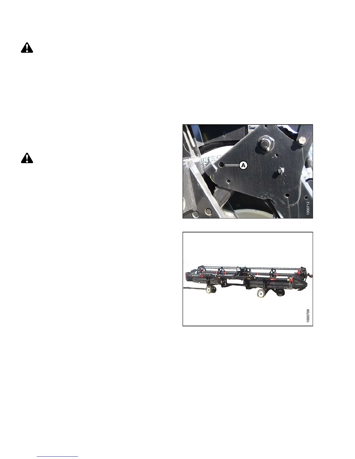 To avoid bodily injury from fall of raised header, always engage safety props when w orking on or around