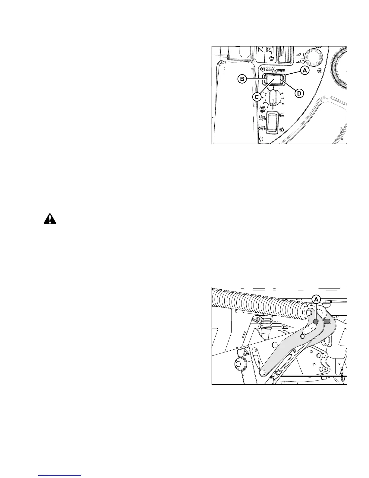 If the head er is not level, check the w indrower tire pressu res before adjusting the levelling linka ges.