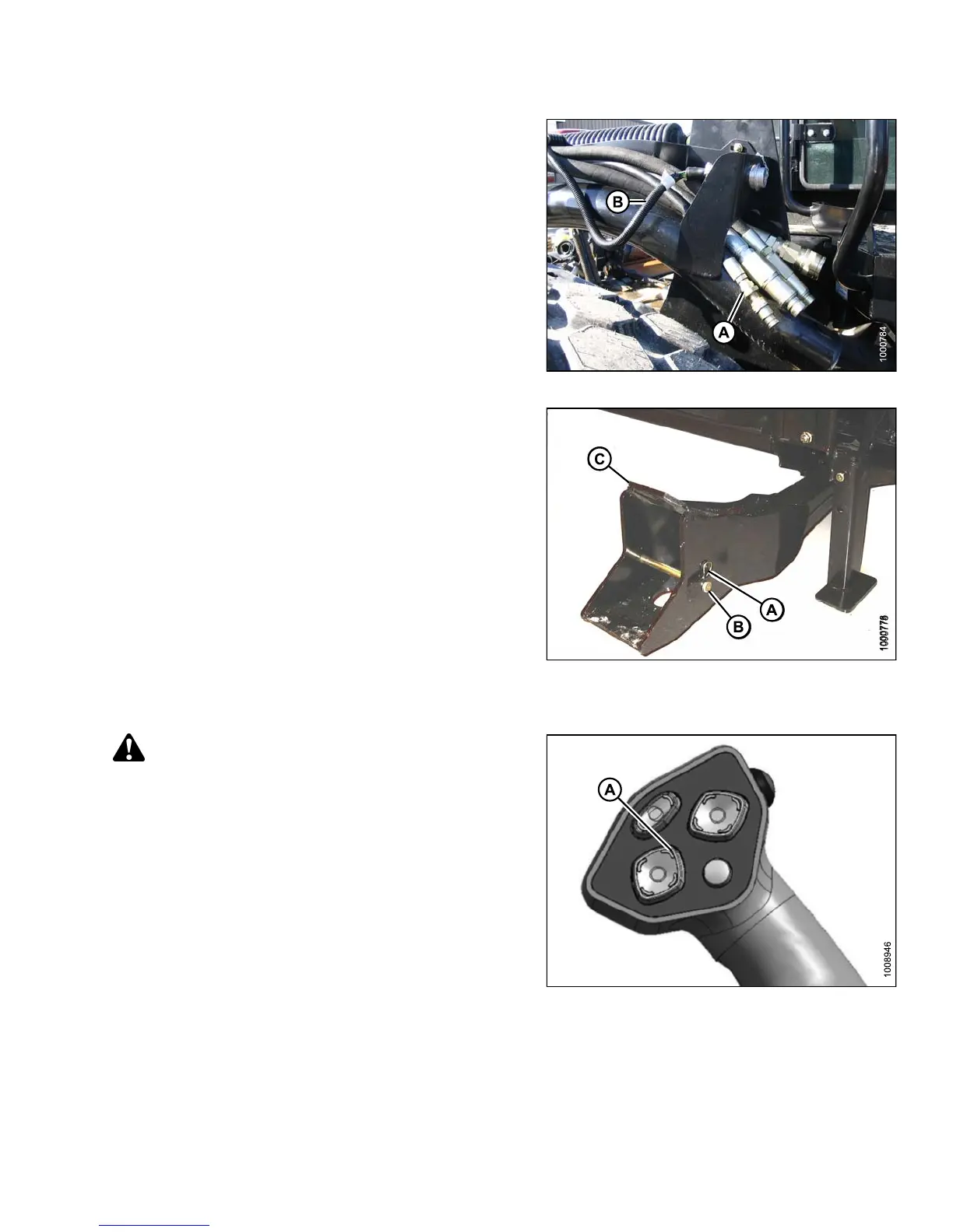 15. Reinstall clevis pin (B) into header boot (C) and secure