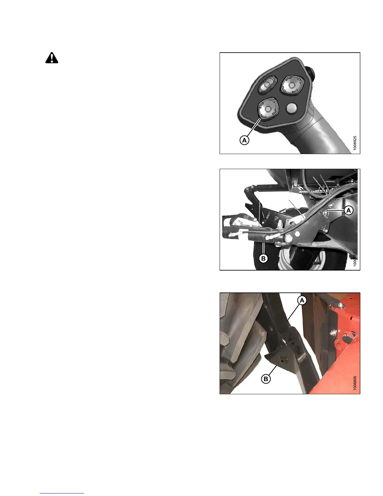 A) enter the header boots (B). Continue driving